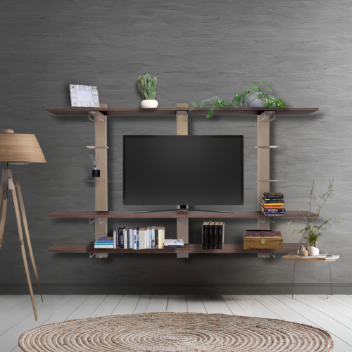 Ideale per posizionare la televisione, è composta da 3 colonne e da 6 mensole con larghezza 139 cm, oltre a 4 mensoline Demetra. La colonna in alluminio centrale si può utilizzare anche come passacavo per i fili della TV e ulteriori dispositivi.