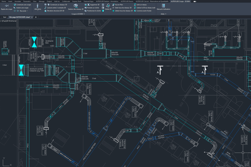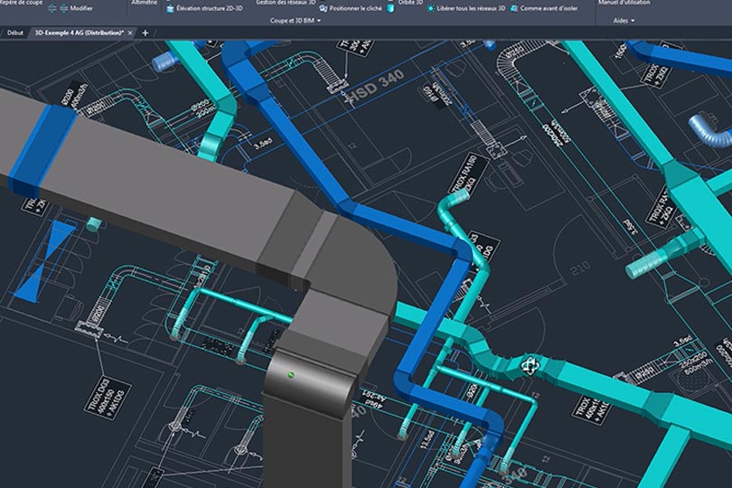 Planimetrie e sezioni 2D/3D accurate e chiare, perfette per la progettazione e per il cantiere. Realizzati con estrema facilità, consentono l’identificazione immediata delle reti (canali, tubazioni e componenti) e dei materiali costruttivi (acciaio, rame, PVC, ecc.).