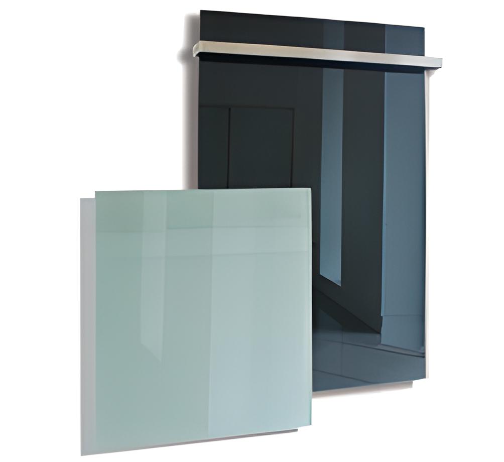 Radiatori senza alcun moto convettivo ma completamente ad irraggiamento, con la loro lastra in vetro temperato da 12 mm.