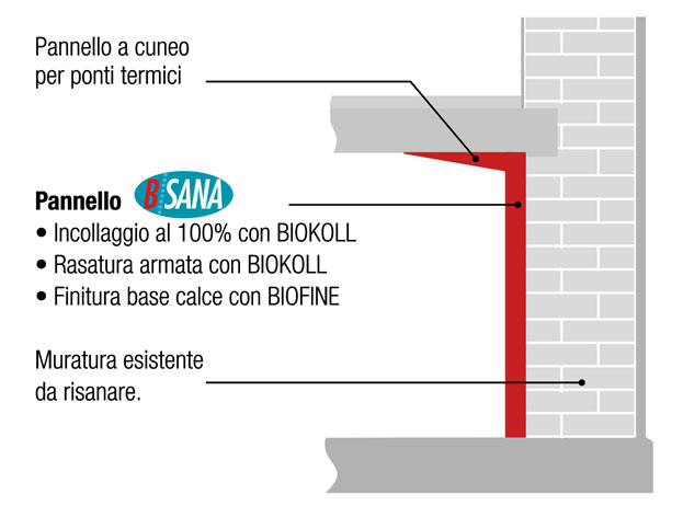 - Incollare i pannelli B/SANA utilizzando l’apposita malta BIOKOLL light