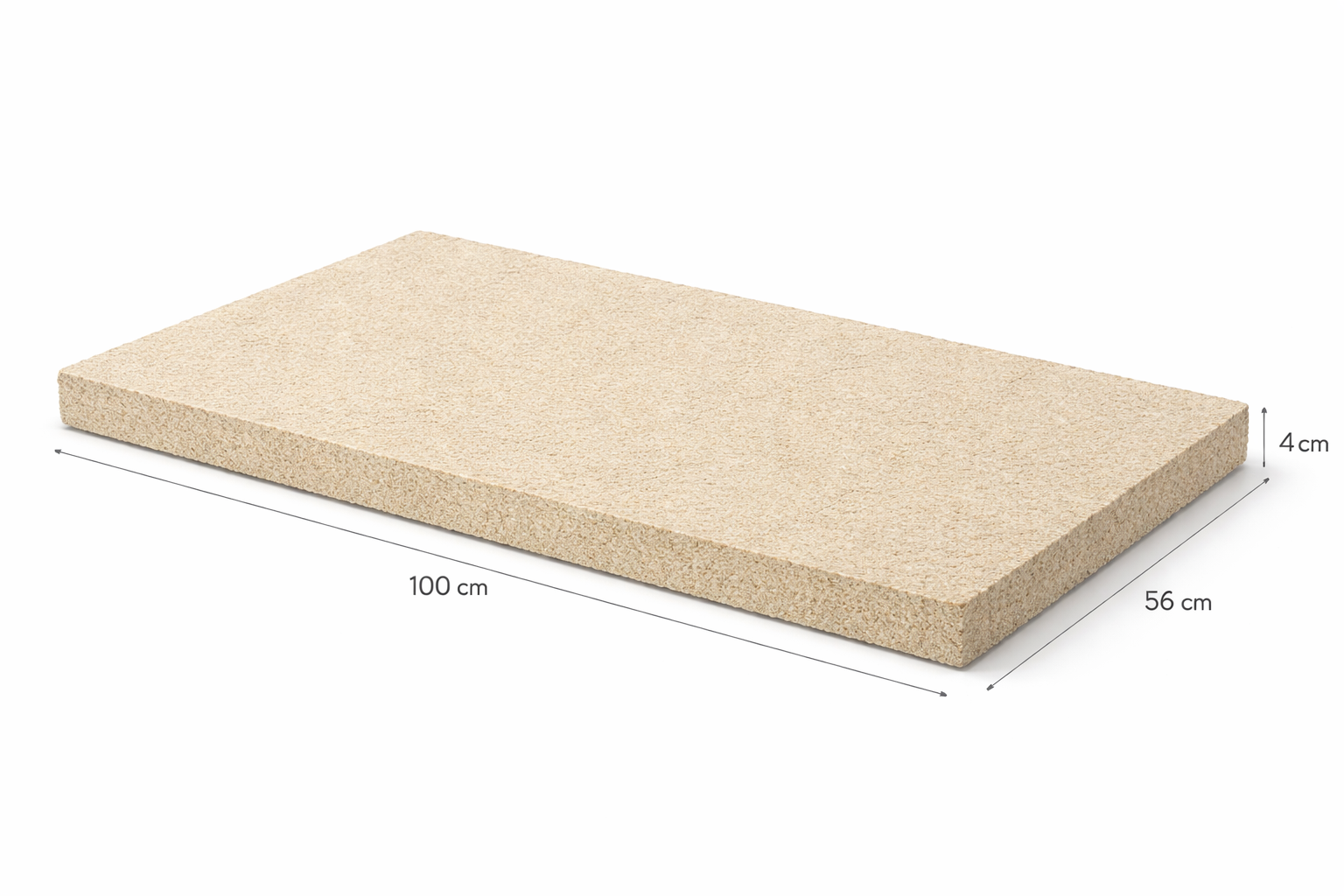 Realizzato senza colle sintetiche, il bio-panello facilita la traspirazione naturale delle pareti e garantisce la qualità dell’aria interna eliminando i composti organici volatili (COV) presenti nei pannelli sintetici, azzerando l’inquinamento indoor.