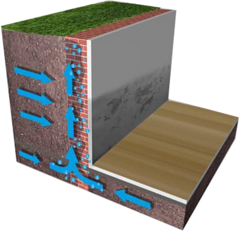 L’umidità di risalita capillare é un flusso costante di molecole d’acqua che salgono nei muri a contatto con il terreno