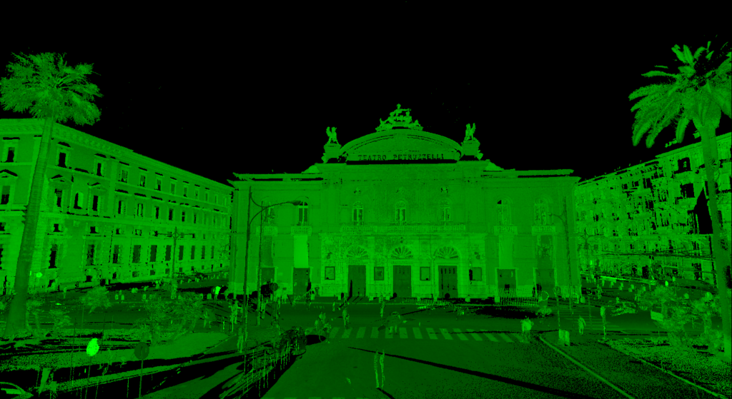 Quello che viene estratto è un modello tridimensionale completo, ossia una nuvola di punti completamente misurabile in termini di distanza e volume, le foto associate sono altrettanto misurabili ad alta definizione, metriche scalabili, e collegate ad un modello navigabile.