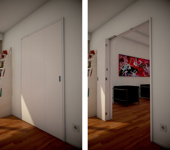 Le porte scorrevoli, invece, richiedono la presenza di pareti libere o degli speciali controtelai dedicati inseriti all’interno della parete, che richiedono un importante lavoro di demolizione/ricostruzione nelle ristrutturazioni, non sempre possibili.
