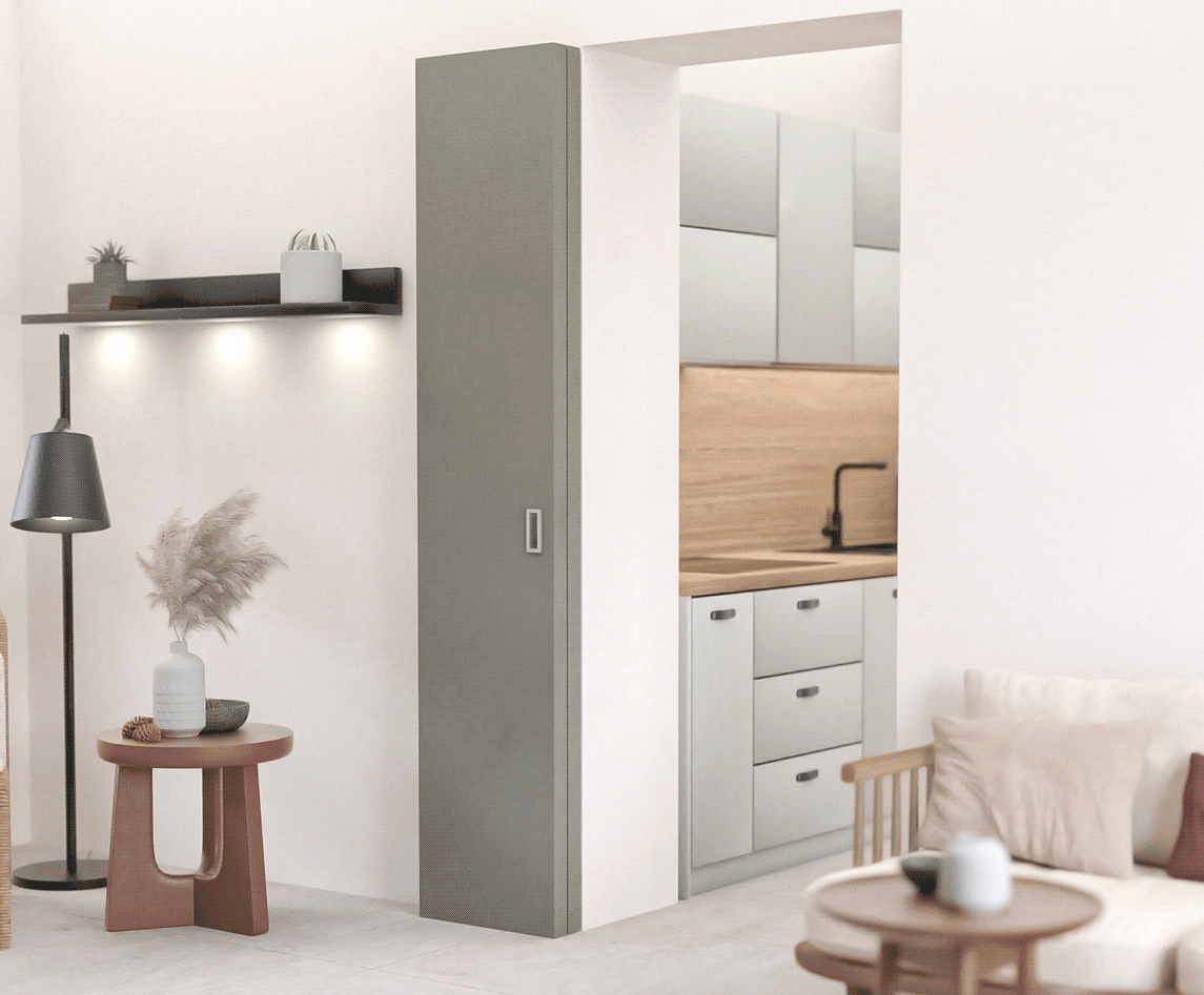 - ACUSTICA: L’apertura scorrevole interno o esterno parete non restituisce una tenuta acustica dell’anta chiusa paragonabile ad un’anta battente, di contro l’apertura COMPACK LIVING® chiude nei tre lati come una porta battente.