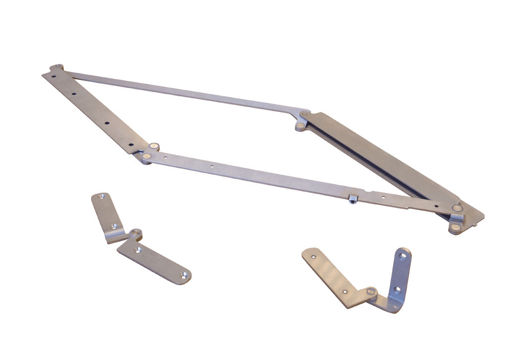 - Cerniera a doppio compasso che, tramite gli speciali leveraggi, garantisce una stabilità di funzionamento e silenziosità decisamente migliorata rispetto ai sistemi a binario.