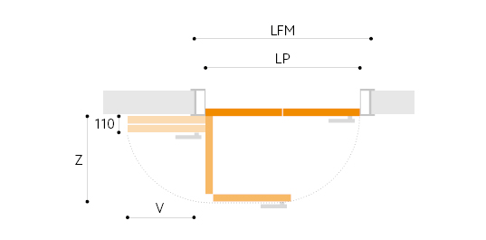 - INGOMBRO FRONTALE: Nel sistema COMPACK LIVING® l’ingombro frontale dell’anta in apertura è ridotto del 50% (come accade nell’apertura rototraslante ergon).