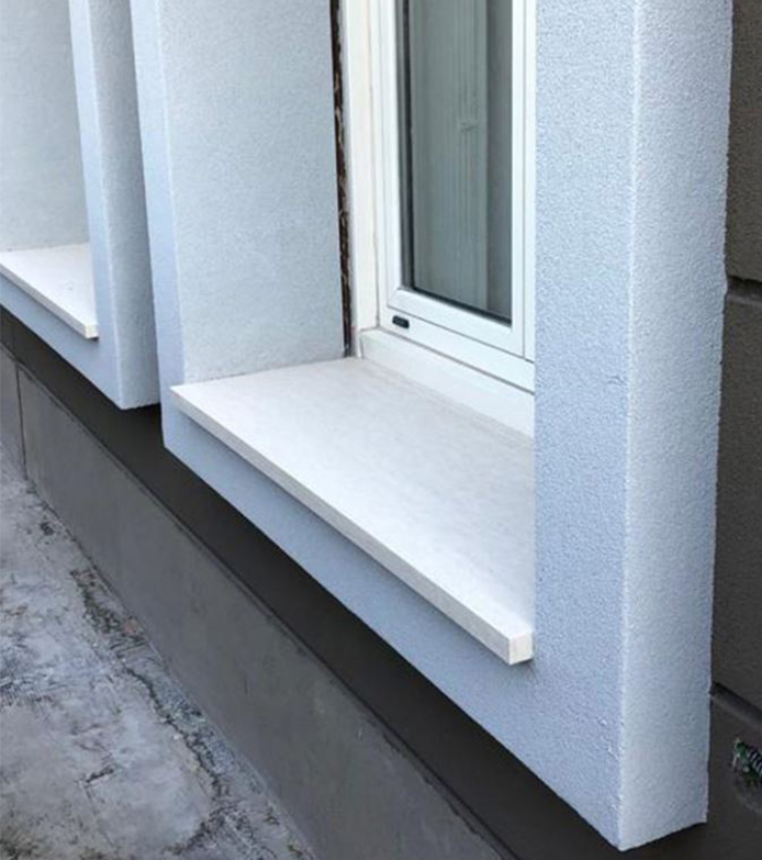 - Fornitura e posa di nuovo davanzale in marmo tipo Trani opportunamente sagomato dal marmista incollato sopra il pannello coibente