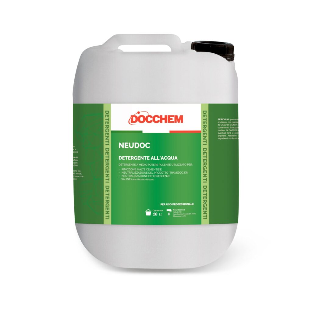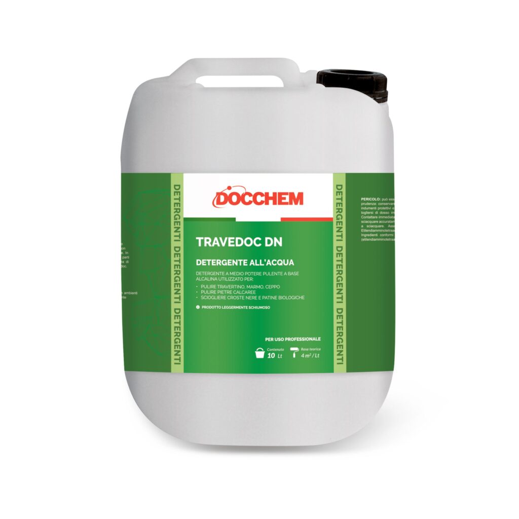 Detergenza con Travedoc DN (tutti i supporti) e Neudoc per tutte le superfici, ad esclusione dei marmi lucidi.