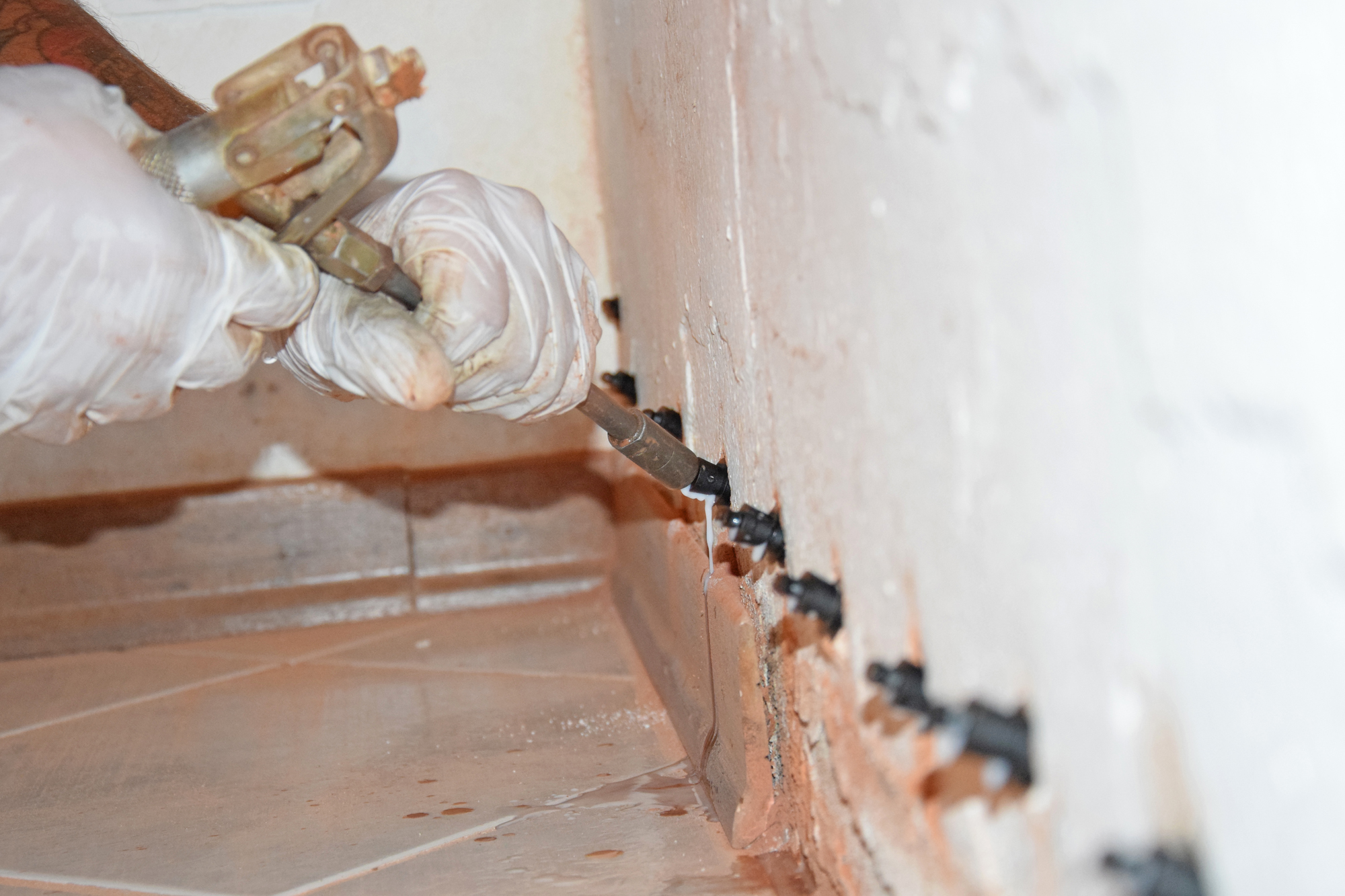 Iniezioni di idrorepellenti idrofobizzanti alla base delle pareti per bloccare definitivamente l'umidità di risalita