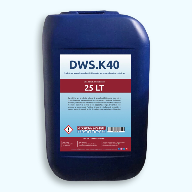 Dws K40 è un efficacissimo idrorepellente usato per realizzare barriere chimiche a caduta o a pressione.