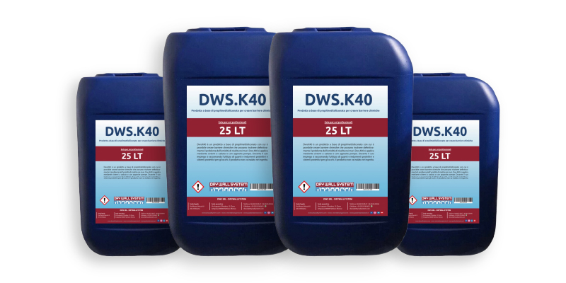 Dws K40 è sviluppato da Dws Srl – Drywallsystem, marchio storico dei sistemi da iniezione con barriera chimica deumidificate dal 1979.