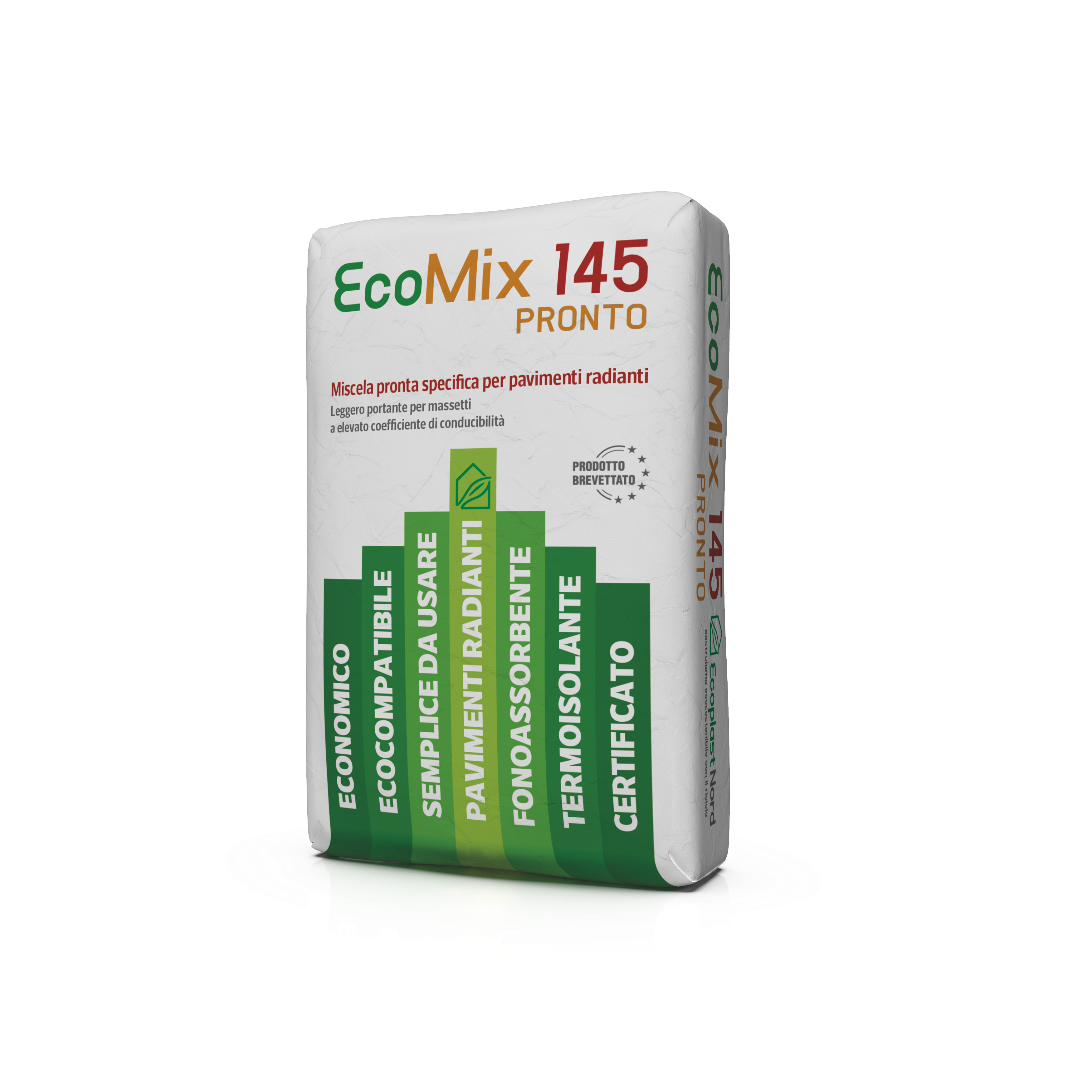 Per i pavimenti radianti è stato pensato EcoMix145: una miscela portante per massetti specifica per i sistemi di riscaldamento e raffreddamento a pavimento. Grazie all’elevato coefficiente di conducibilità termica certificato è ideale per l’utilizzo nei sistemi a riscaldamento a pavimento avendo un’ottimale e omogenea trasmissione del calore.