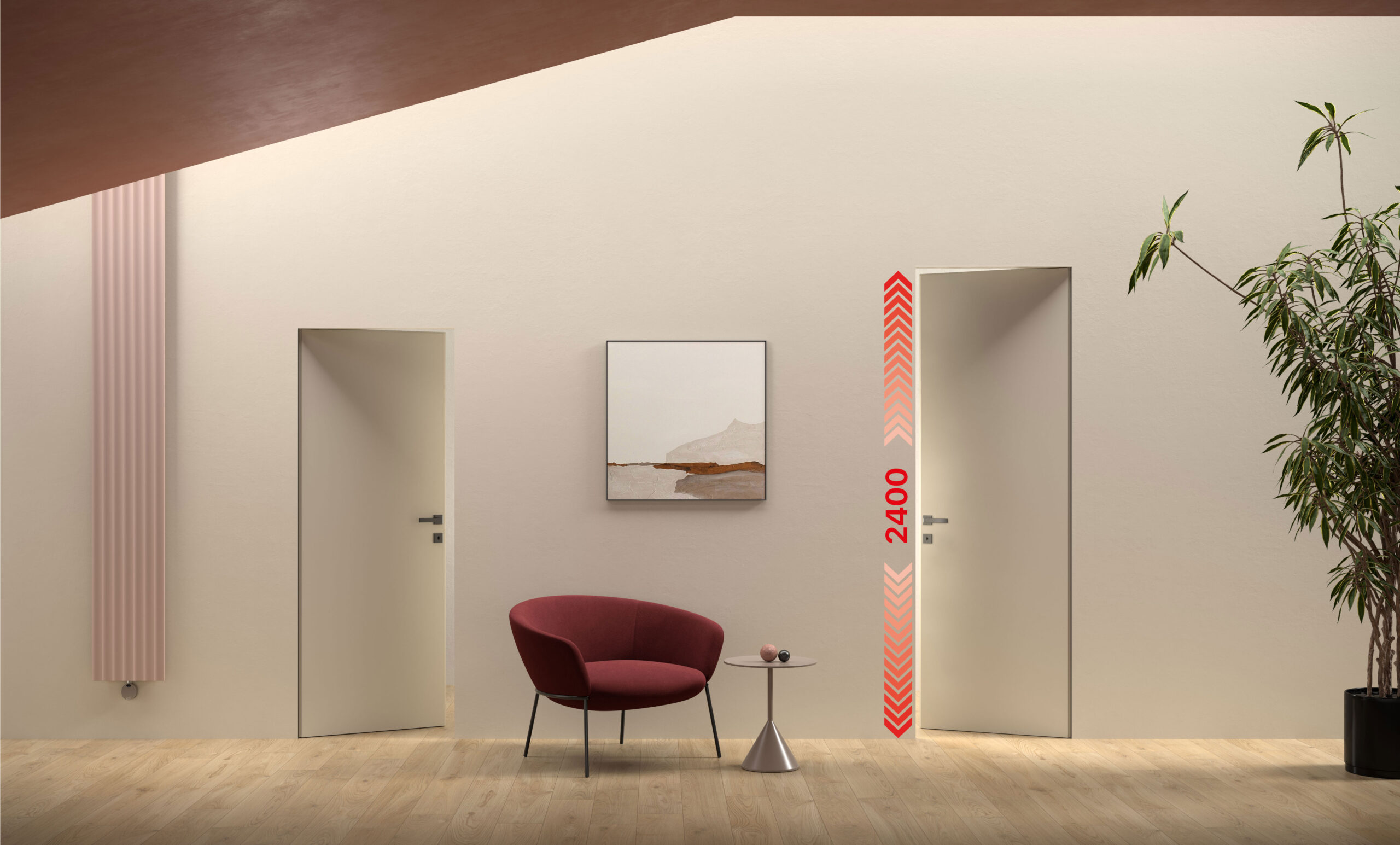 La porta reversibile filo muro xREVERx XL include il telaio, la porta filo muro e la ferramenta, mettendo a tua disposizione un mondo di possibilità: