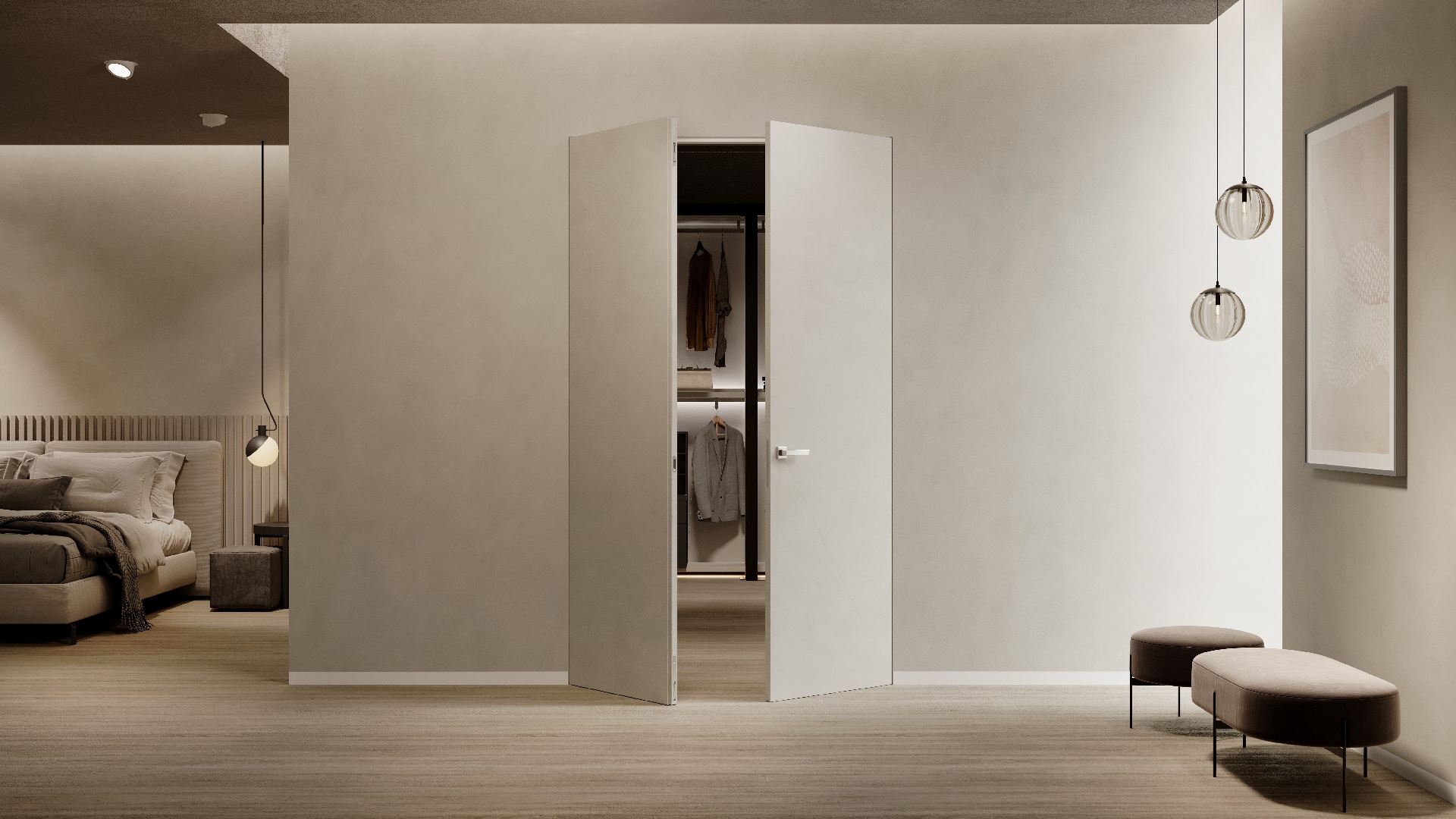 Absolute Evo è l’alleato perfetto per guadagnare maggiore spazio, grazie al movimento scorrevole dell’anta. Il modello è disponibile anche in versione anta doppia per assicurare un effetto più scenografico, ma senza rinunciare alla discrezione di un ambiente celato. Anche in questo caso, l’effetto mimetico è assicurato dalla possibilità di decorare le ante come la parete circostante, oppure di utilizzare della carta da parati.