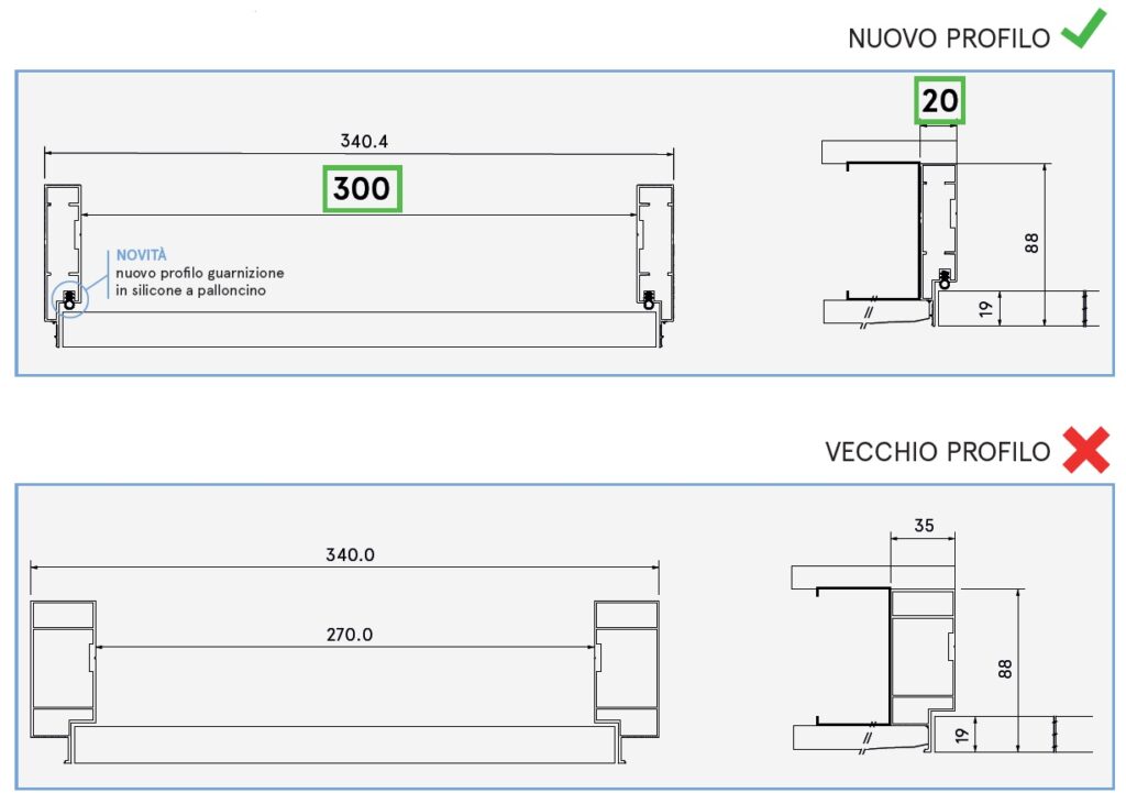 Ermetika ha inoltre migliorato lo spessore del profilo del telaio, passando da 35 mm a 20 mm. Questa ottimizzazione permette una maggiore luce di passaggio a parità di ingombro, guadagnando spazio utile all’interno del vano.