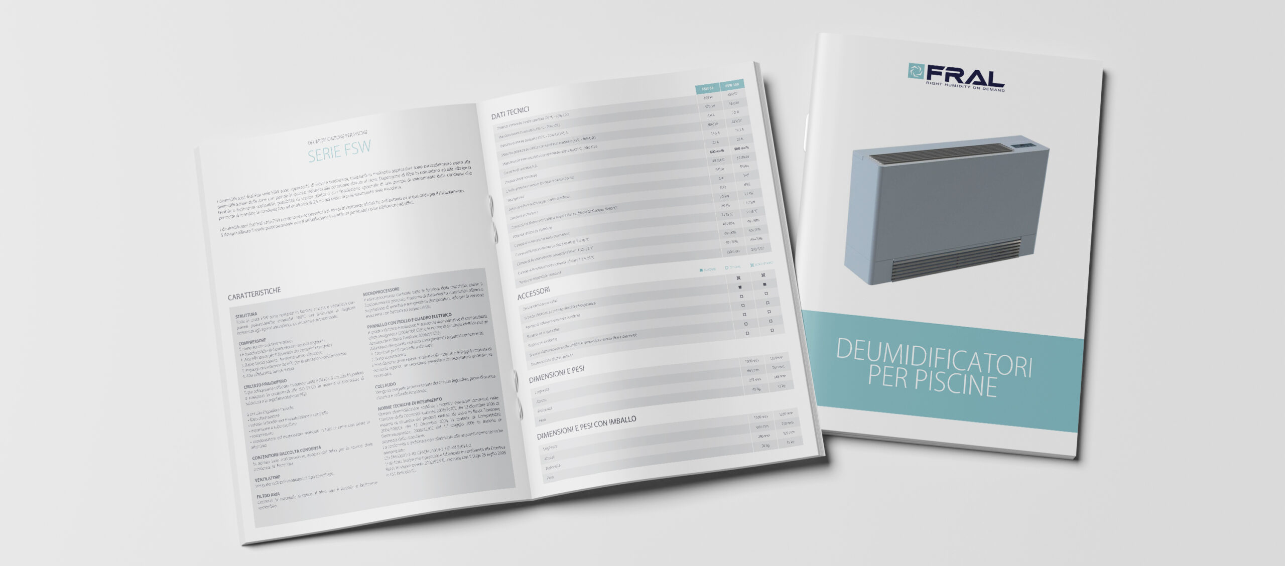 I deumidificatori fissi Fral serie FSW sono apparecchi di elevate prestazioni, utilizzabili in molteplici applicazioni; sono particolarmente adatti alla deumidificazione delle zone con piscina in quanto resistenti alla corrosione dovuta al cloro. Dispongono di filtro in poliuretano ad alta efficienza lavabile e facilmente sostituibile, possibilità di scarico diretto o con l’istallazione opzionale di una pompa di sollevamento della condensa che permette di mandare la condensa fino ad un’altezza di 3,5 mt dal livello di posizionamento della macchina. I deumidificatori fissi Fral serie FSW possono essere provvisti a richiesta di resistenze elettriche o di batteria ad acqua calda per il riscaldamento.