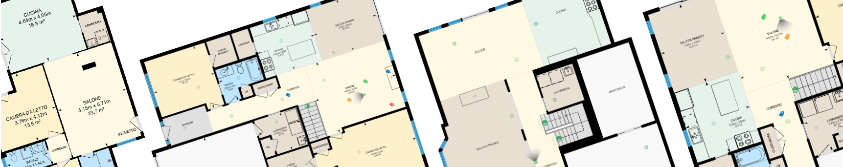 In un rilievo di interni le planimetrie assumono un ruolo importantissimo perché spiegano come è articolato uno spazio, mostrando le dimensioni delle stanze, il verso di apertura delle porte, lo spazio di archiviazione e tanto altro. Per questo motivo, iGUIDE® fornisce planimetrie accurate ogni volta che rilevi. I formati delle planimetrie, sia online che stampabili, sono: JPG, SVG, PDF, DXF e DWG, già divise in layers.