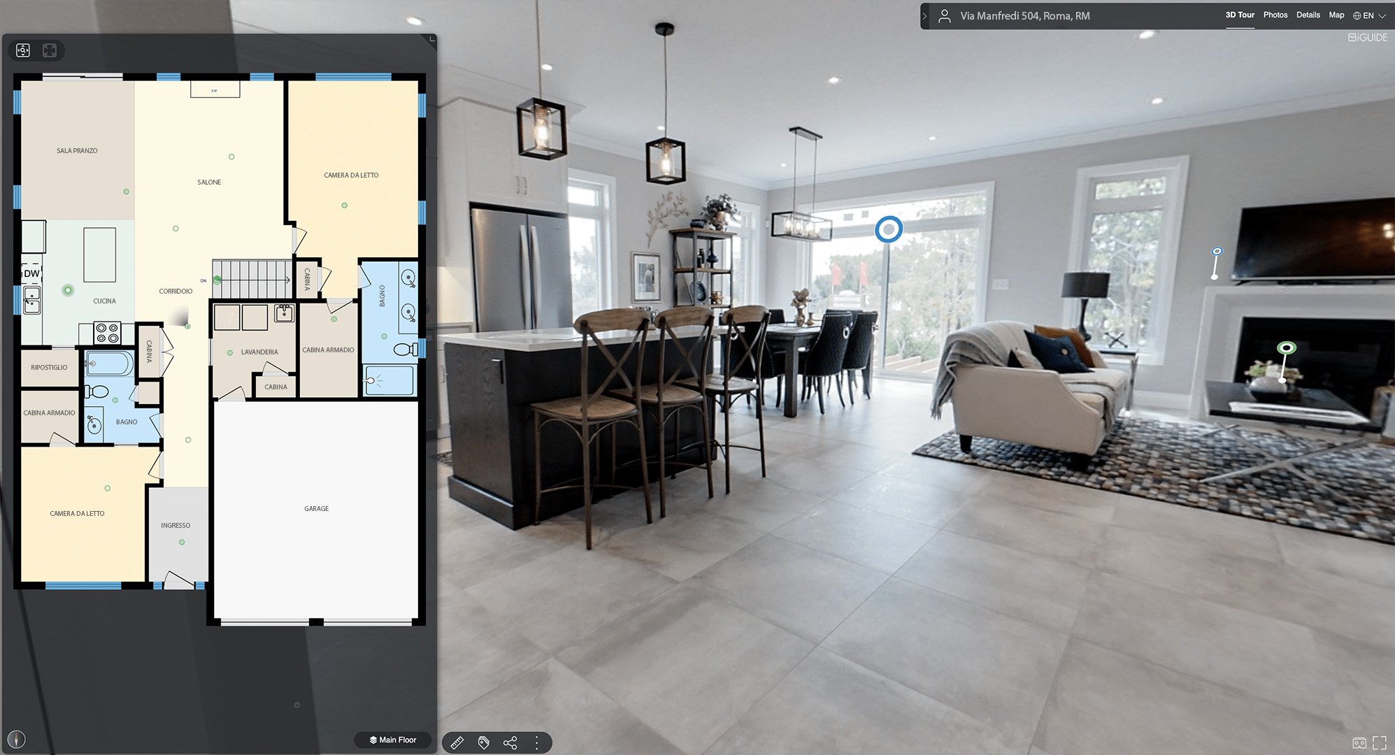 I tour 3D di iGUIDE® sono facili da navigare perché combinati alle planimetrie dettagliate che consentono una navigazione facile ed intuitiva.