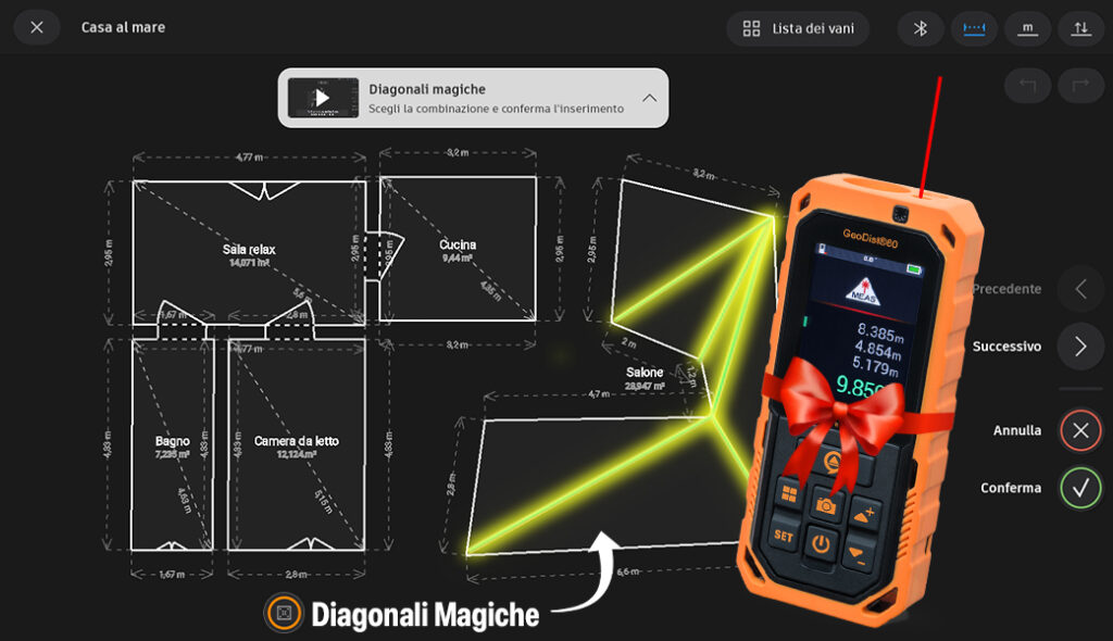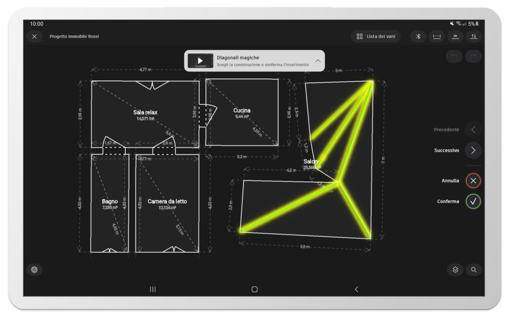 Rilievo ti suggerisce la giusta combinazione di diagonali da misurare per la corretta risoluzione dei vani.
