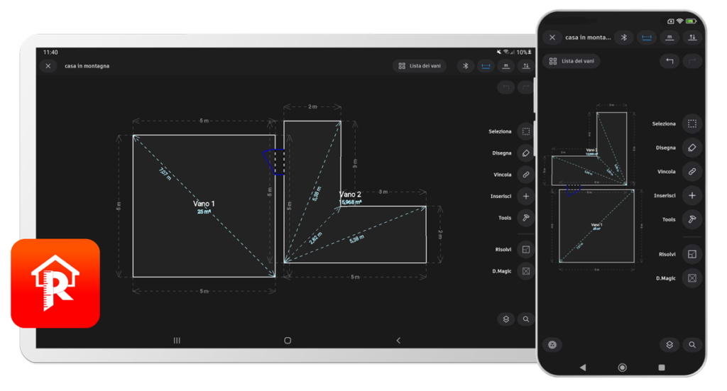 È arrivato Rilievo: il rivoluzionario software di rilievo architettonico per Android con Intelligenza Artificiale (AI) e diagonali magiche indispensabile per i tuoi rilievi di interni.