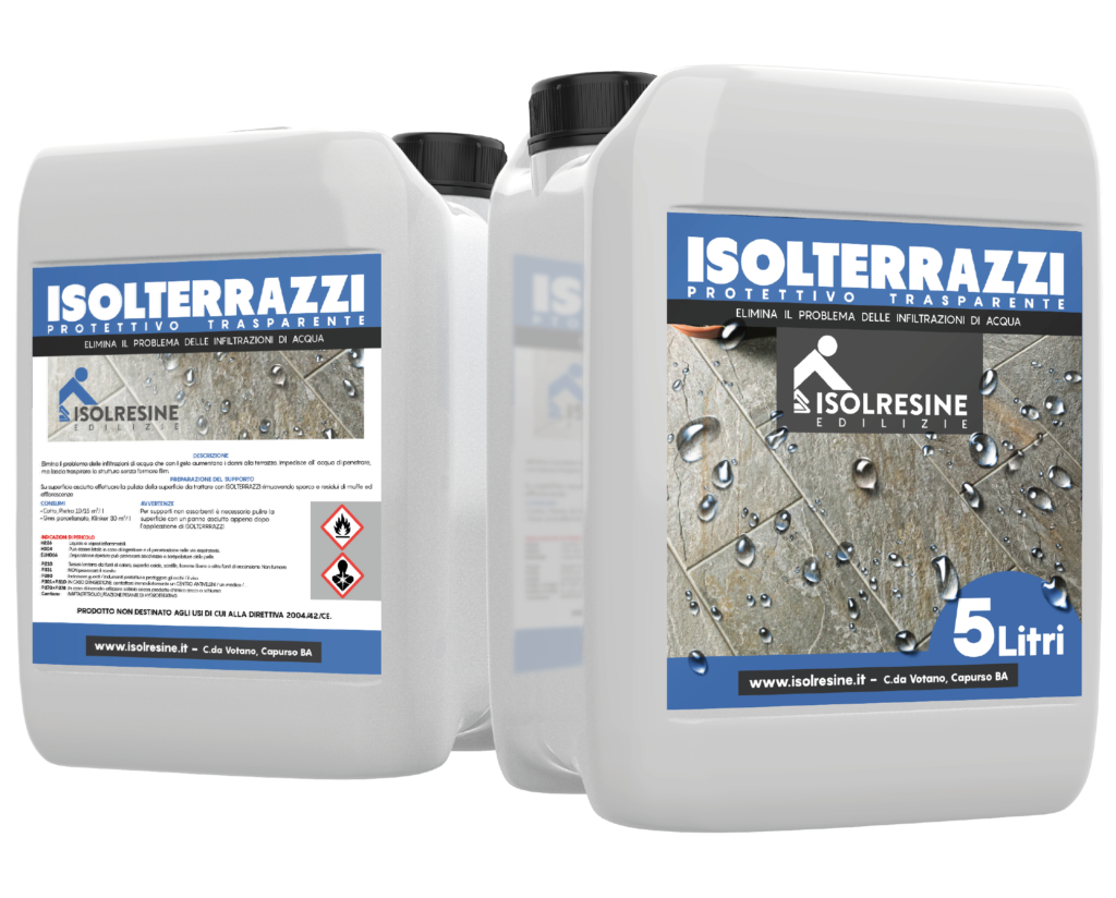 ISOLTERRAZZI legandosi chimicamente con le superfici e penetrando nelle fessure conferisce compattezza, idrorepellenza e resistenza nel tempo ai raggi UV e al processo di invecchiamento. Elimina il problema delle infiltrazioni e la formazione di muffe ed efflovescenze.