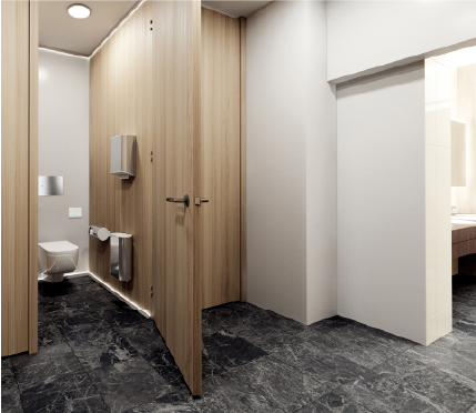 Una cassetta a impulso elettrico progettata e realizzata specificamente per i bagni a uso pubblico come quelli di alberghi, scuole, ospedali e altre comunità, ma comunque a suo agio anche in quelli privati.