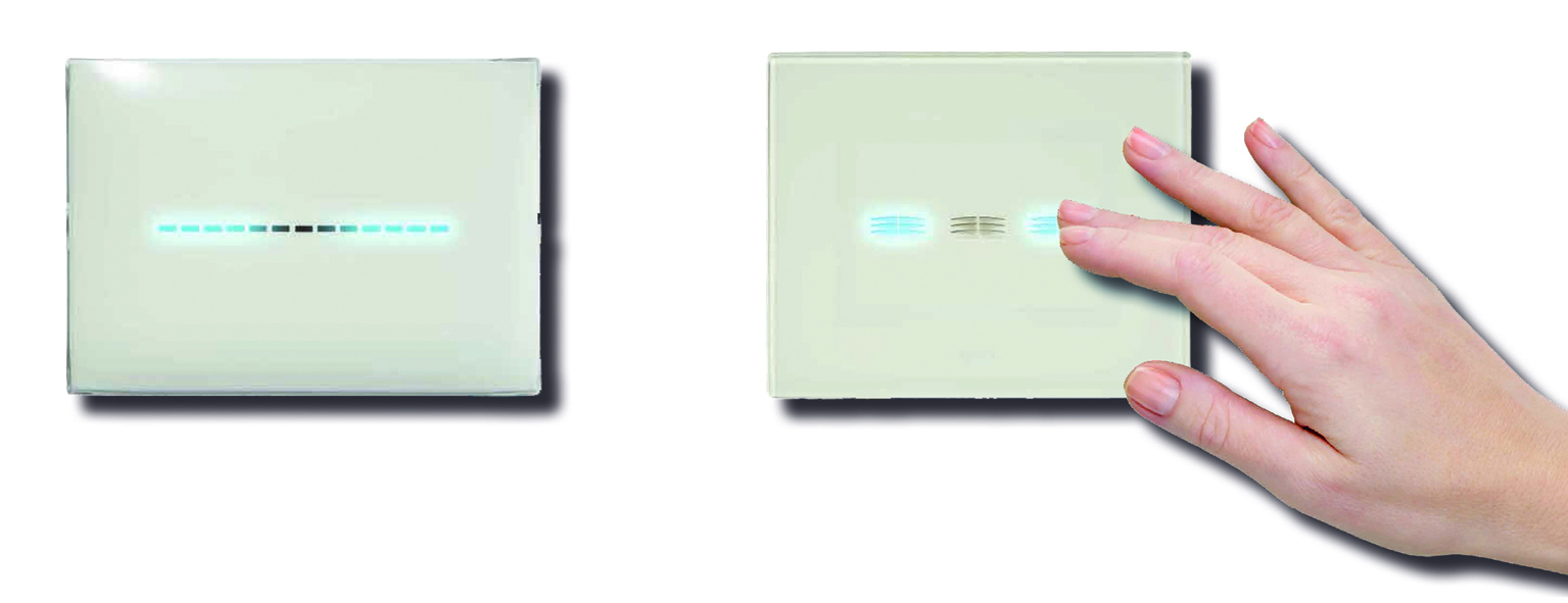 Oggi è disponibile anche con pulsanti “a sfioro”, sempre a due quantità, in resina bianca o vetro bianco.