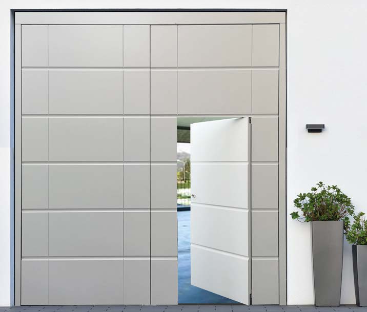- Possibilità di porta pedonale inserita priva di ingombri a pavimento
