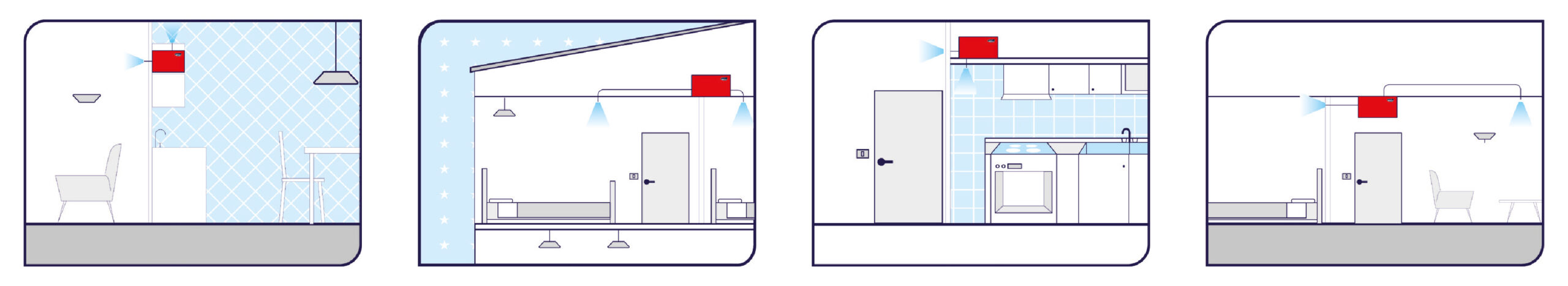 - Può essere alimentato con ventilazione diretta o canalizzato in più stanze