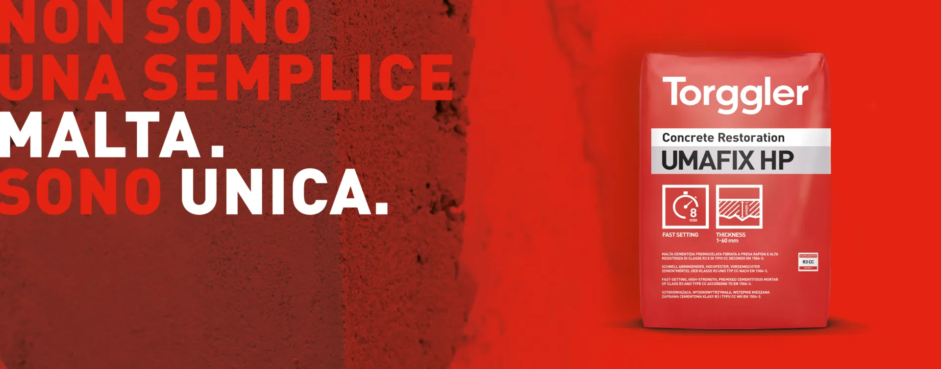 Classificato come malta strutturale R3 secondo EN 1504-3